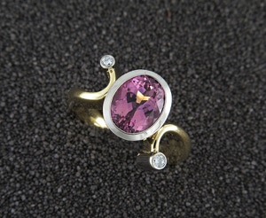 Damenring in Weiss- & Gelbgold 750, pinke Saphir 1.30 ct.
