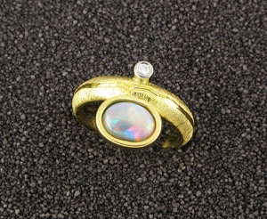 grau Opal 7 x 9 mm, 1,17 ct. und ein Brillant 0,03 FG/vs