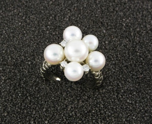 "Terra" Damenring in Weissgold 750, 6 Akoyaperlen
