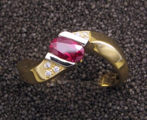Damenring in Rot- und Weissgold 750, violetter Saphir 1,91 ct,